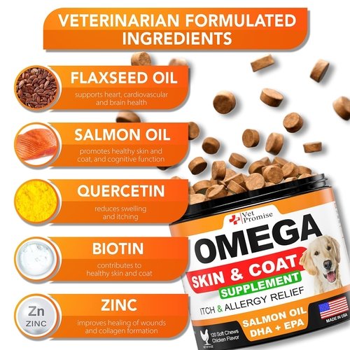 Healthy Skin & Shiny CoatAchieve a healthy skin and shiny coat with our dog omega 3 supplement. It provides essential vitamins and fatty acids that promote soft, shiny, and healthy coats and skin.