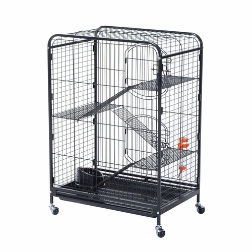 PawHut 37″ Pet Cage Hamster Rats House Playpen 2 Doors Tray Animal Supply Kit Metal Black