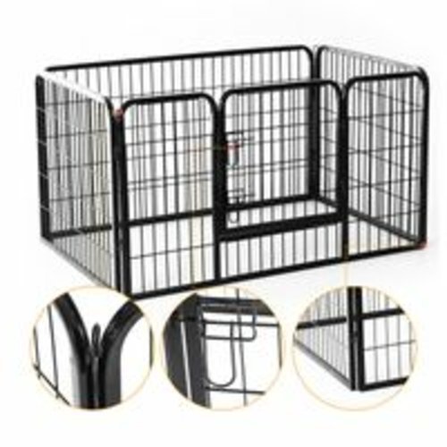 This pet playpen are perfect for a variety of pets. It can be easily set up for indoor and outdoor use. 4 durable panels could be folded up for easy storage. Sturdy metal wire with anti-rust coating ensures long time use. It will be a secure protection area for your pets’ living and romping around outdoors without your worries.